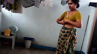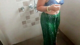 desi with hairy armpit wears saree after bath