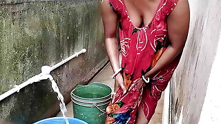 village bhabhi bathing outdoor
