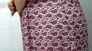 Aunty pissing in douche and I caught and I see her big puss and big boobs