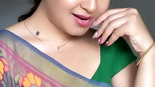 mind-blowing Indian Aunty Sexy Green Saree