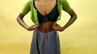 Amateur skinned Desi aunty demonstrated her small tits with pointy nipples