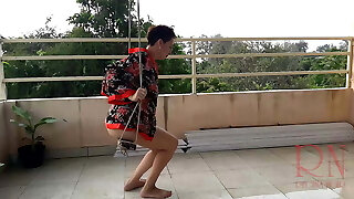 While the Desi stepmom washes bra & panties, stepmom took off the stepson's pants and Naked him, Then asks him to pummel her - Jizz